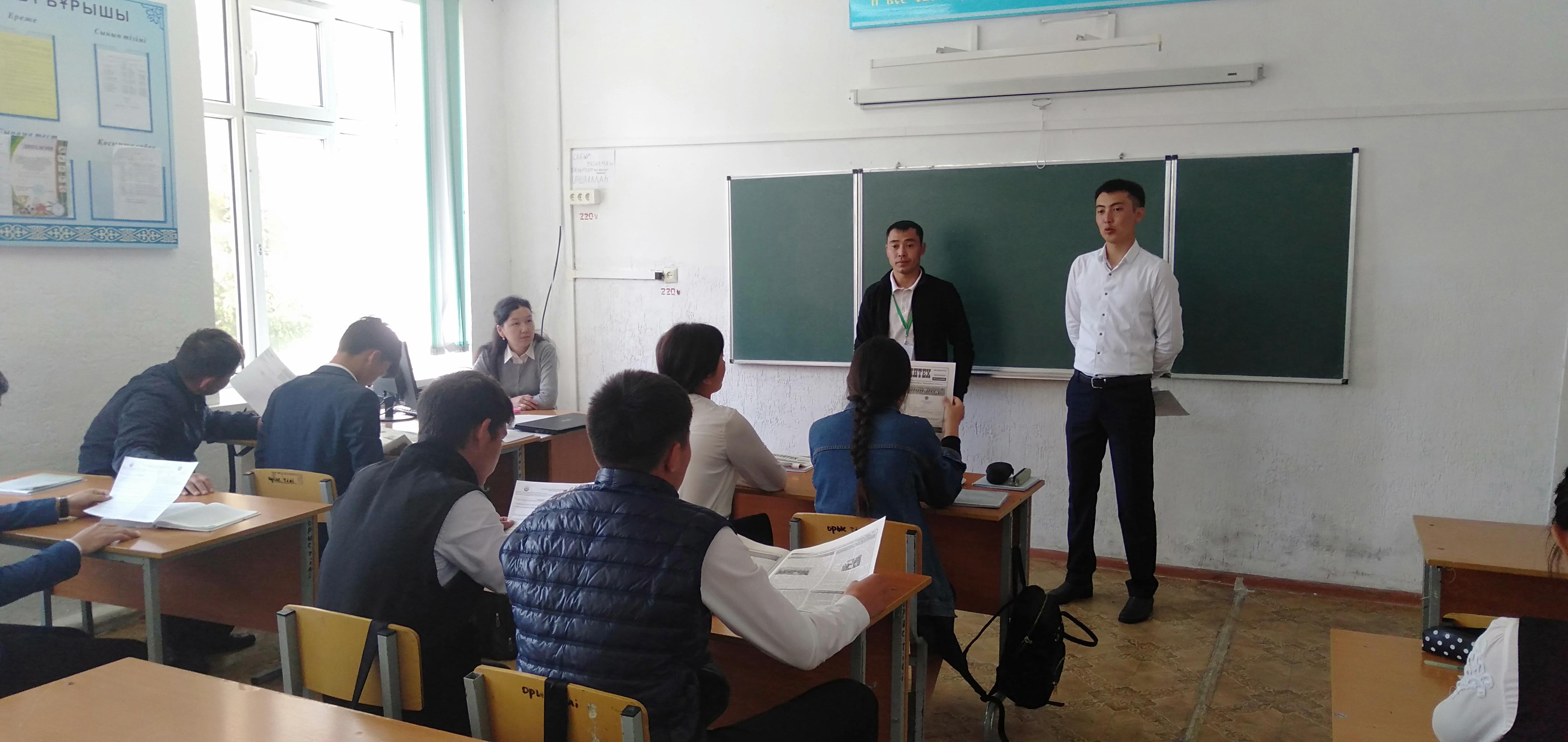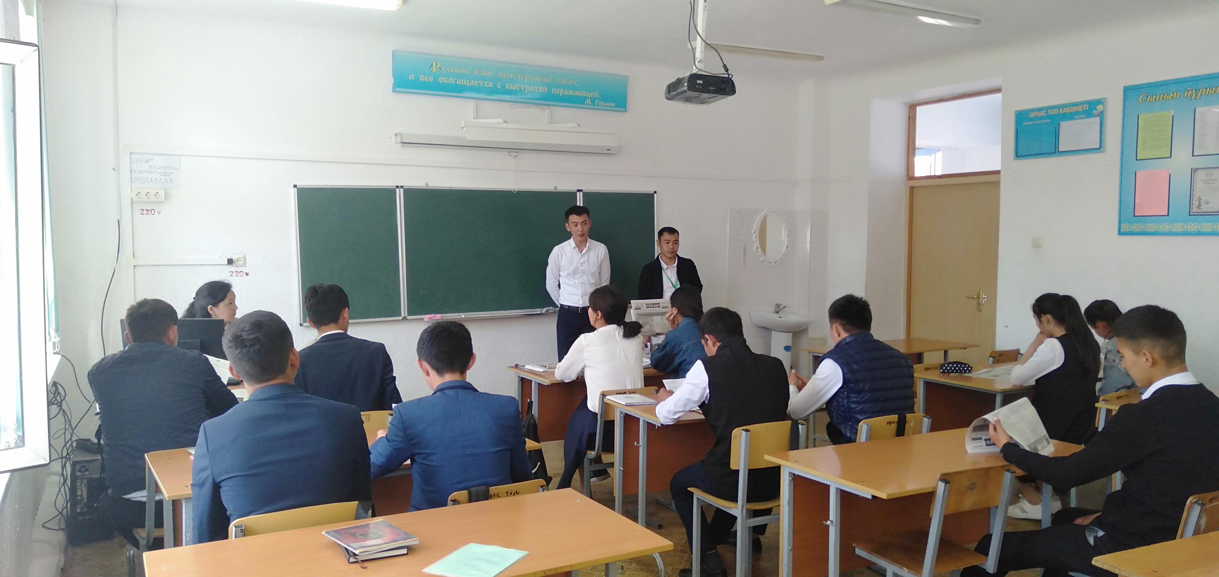 08 May 2019 0 1 2 3 4 5 Кәсіптік бағдар 08.05.2019 жылы мектебімізде 9-11 сынып оқушыларына Талдықорған қаласындағы Политехникалық колледж қызметкерлері кәсіптік бағдар бойынша кездесу өткізді