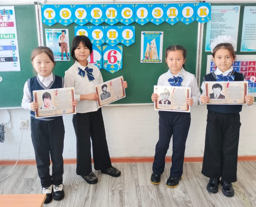 13 декабрь 2023 0 1 2 3 4 5 16 желтоқсан- Тәуелсіздік күніне арналған іс- шаралар жоспары аясында өткізілген "Тәуелсіздік-елімнің ерлік жолы" тақырыбындағы сынып сағаттары