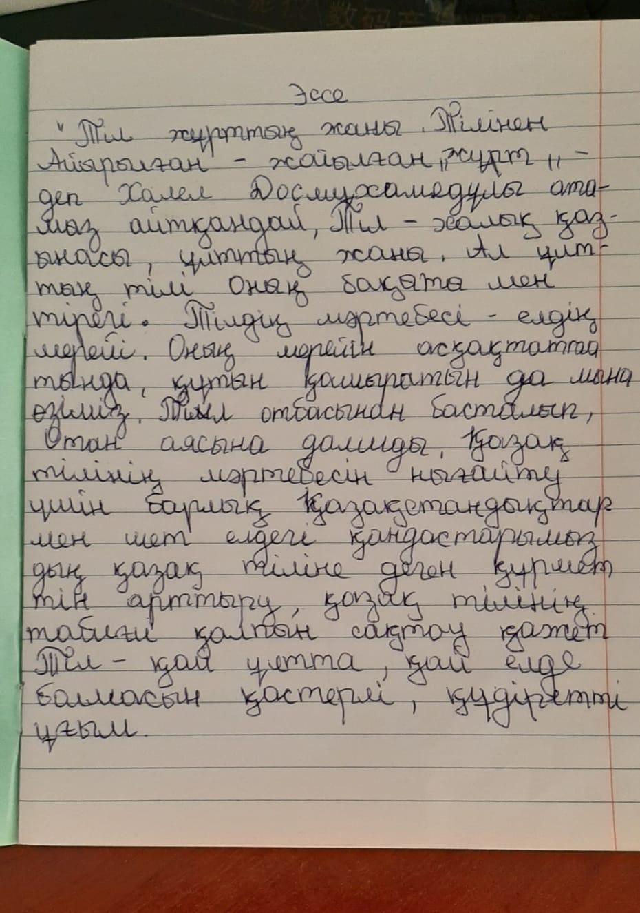 "Тіл ел байлығы" эссе » "Жансүгіров атындағы орта мектебі" отдела образования Кербулакского района
